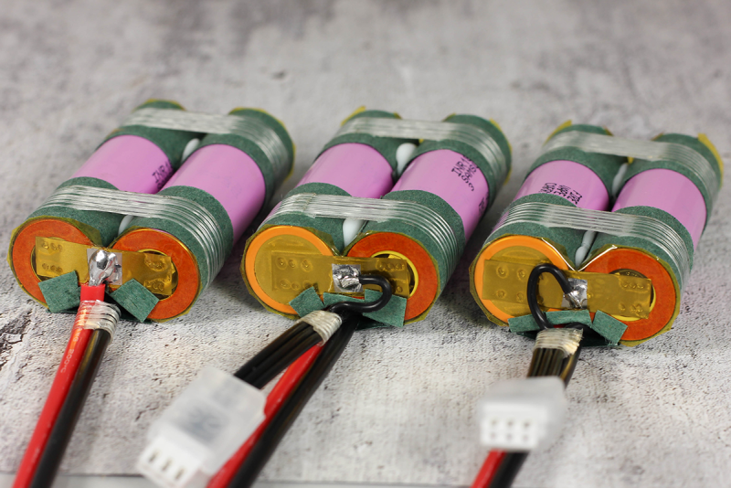 Дополнительная фиксация ячеек в сборке скотчем, армированным стекловолокном. И далее точечная сварка. Так как высоких нагрузок не предполагается, то сварка производится лентой в один слой.После сварки производится залуживание контактов для дальнейшей пайки силовых и балансировочных проводов.
